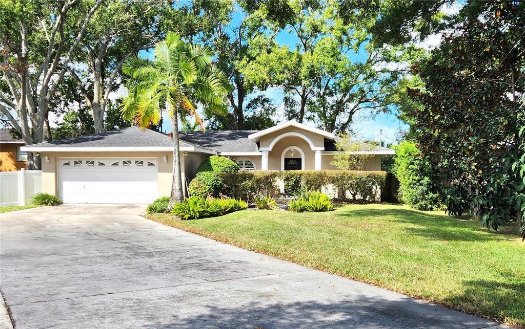 Multiple offer receiived. Highest and Best due by 8pm 10/12. This beautifully updated 2-bedroom, 2-bathroom, 2-car garage home is situated on nearly ¼ acre in a quiet, centrally located Tampa neighborhood. From the moment you arrive, you’ll notice the professionally designed shrubbery and expanded driveway, offering ample parking for guests or multiple vehicles. Step inside to an open-concept floor plan featuring a spacious living and dining area with custom plantation shutters, perfect for both everyday living and entertaining. The kitchen is a true highlight, boasting granite countertops, stainless steel appliances, an island sink with breakfast bar, and ample cabinet space. The split floor plan provides privacy, with the primary suite featuring a walk-in closet and a stylish en-suite bathroom complete with granite vanity and walk-in shower. The second bedroom is tucked away for added privacy, and the guest bathroom has been tastefully updated with new luxury vinyl plank flooring and a tub/shower combo. Enjoy Florida living year-round in the screened and covered lanai, which leads out to a large wooden deck—ideal for grilling, relaxing, or entertaining. The fenced backyard is expansive, offering plenty of room for pets, kids, or even a pool. The home features and new AC System. The home had a small settlement issue that was documented and professionally remediated in 2025 for peace of mind. The home’s prime location just off Dale Mabry Hwy and Water Ave offer easy access to shopping, dining, downtown Tampa, and major highways. This home offers comfort, style, and convenience — all on a generous lot in a desirable location. Don’t miss out on this Tampa gem!